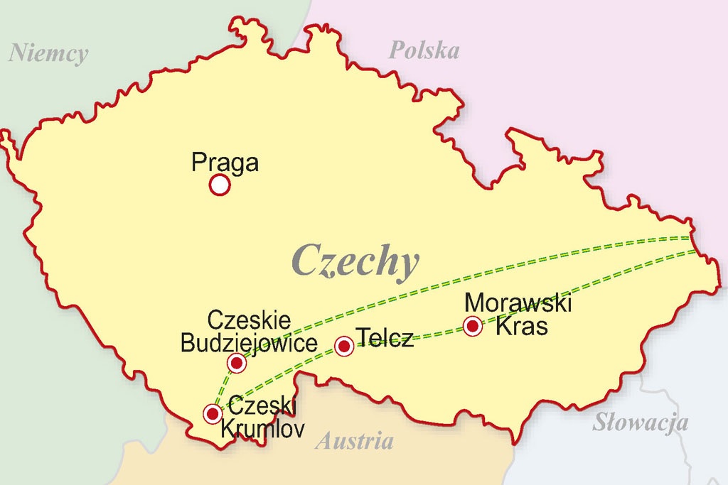 Morawski Kras - Telcz - Hluboka nad Wełtawą - Holaszowice - Czeski Krumlov - Romberk nad Wełtawą - Czeskie Budziejowice - Żvikov